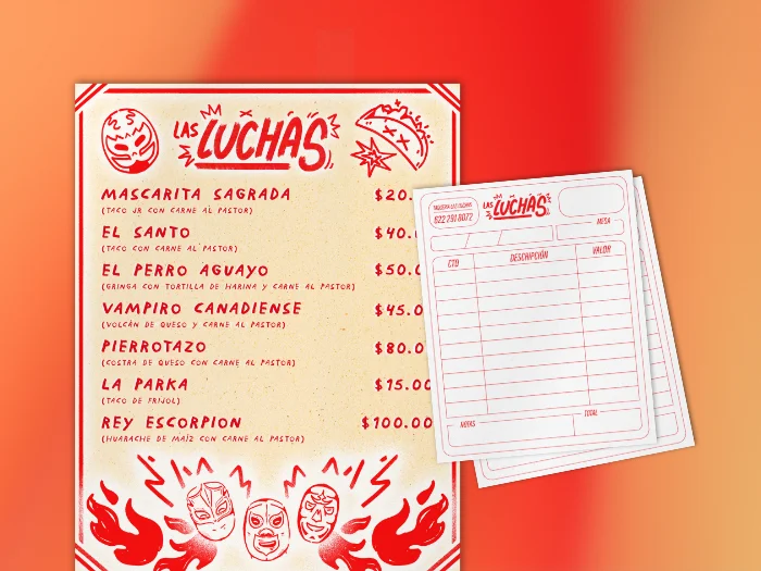 Diseño de marca autentico con esencia en la cultura mexicana de lucha libre. Trazos hechos a mano digitalizados y branding aplicado al negocio, uniformes y redes socicales.